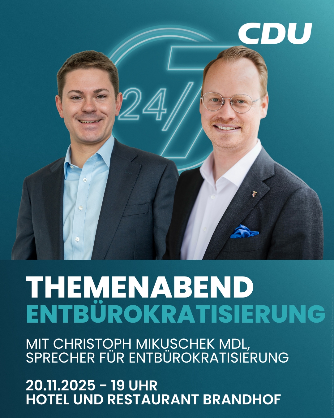 Die CDU Seeheim-Jugenheim lädt herzlich zu einem Themenabend mit dem Landtagsabgeordneten Christoph Mikuschek, Sprecher der Landtagsfraktion für Entbürokratisierung, ein.