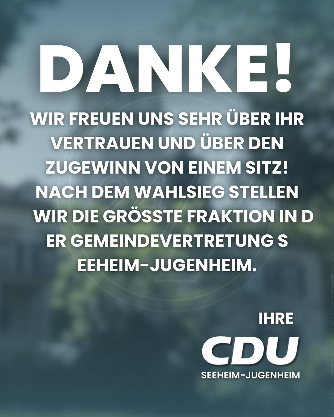 Gleichzeitig verstehen wir dieses Ergebnis als klaren Auftrag und Ansporn, auch in Zukunft verantwortungsvolle und engagierte Politik für Seeheim-Jugenheim zu gestalten.